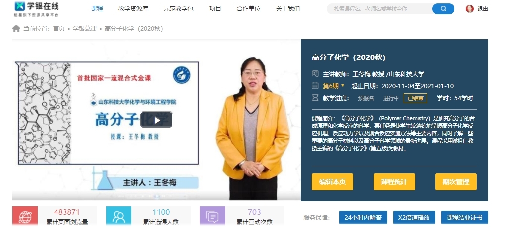 (1)《高分子化学》课程被认定为国家级、省级线上线下混合式一流课程。