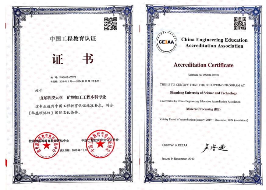 的传统优势学科,为山东省及全国的煤炭、冶金、化工等重要行业培养骨干人才。本专业于2019年通过了工程教育专业认证,进入全球工程教育“第一方阵”,2020年获批山东省一流本科专业,2021年获批国家级一流本科专业建设点。依托矿业工程一级学科博士点,本专业2000年获得博士学位授予权,2005年被评为山东省“十五”重点建设学科,2008年被评为山东省特色专业,2008年、2009年分别获得中央与地方共建高校优势学科实验室建设项目资助,2011年被评为山东省“十二五”重点学科,2012年被列为山东省应用基础型人才培养特色名校建设专业,2016年获批为山东省一流学科(矿业工程)和山东省高水平应用型立项建设专业(群)(矿业工程),是目前山东省矿物加工工程领域唯一具有本科、硕士、博士、博士后各层次人才培养条件的专业。目前,矿物加工工程专业已在本科生中择优开展“本-硕-博”培养工作。